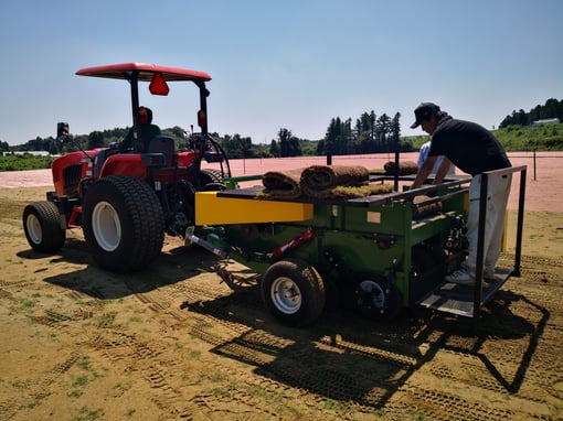従来工法の場合, ほふく茎が土の中に植えこまれ、ローラー転圧されるまで、工程が2~3工程(苗ばらまき、表土攪拌、転圧)に分かれます。ソッドシュレッダー工法では、 植付けから転圧まで全てオールインワンの1工程、いわゆる「ワンパス」で作業が完了するため、風によるほふく茎の飛散、乾燥リスクが大幅に削減されます。